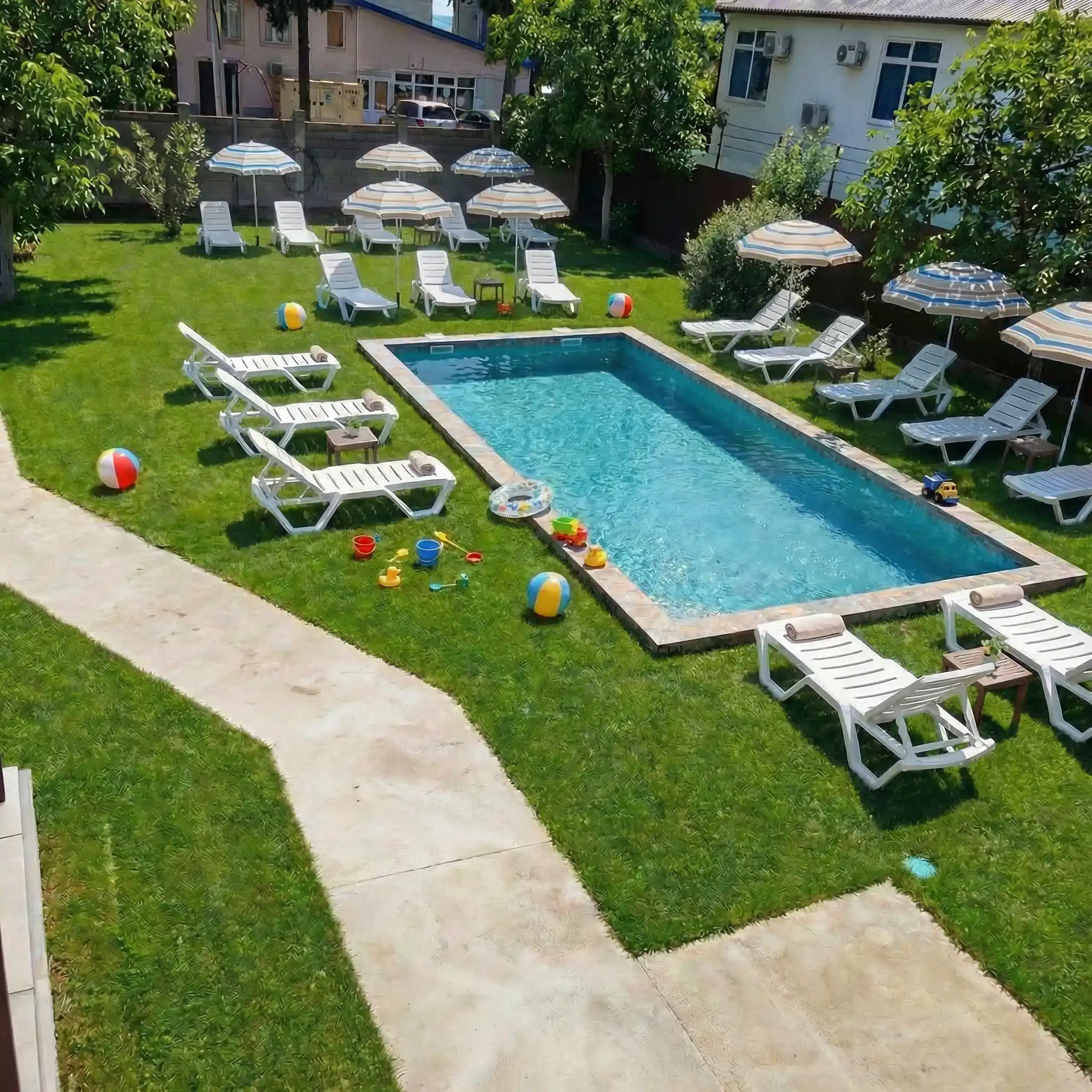 AQUARIUS HOTEL входит в число абхазия отели с бассейном у моря, что особенно востребовано среди туристов, ищущих сочетание пляжного и спокойного отдыха. После ребрендинга здесь созданы все условия для беззаботного отпуска: закрытая охраняемая территория, бесплатный Wi-Fi, парковка, современная детская площадка и уютный двор.