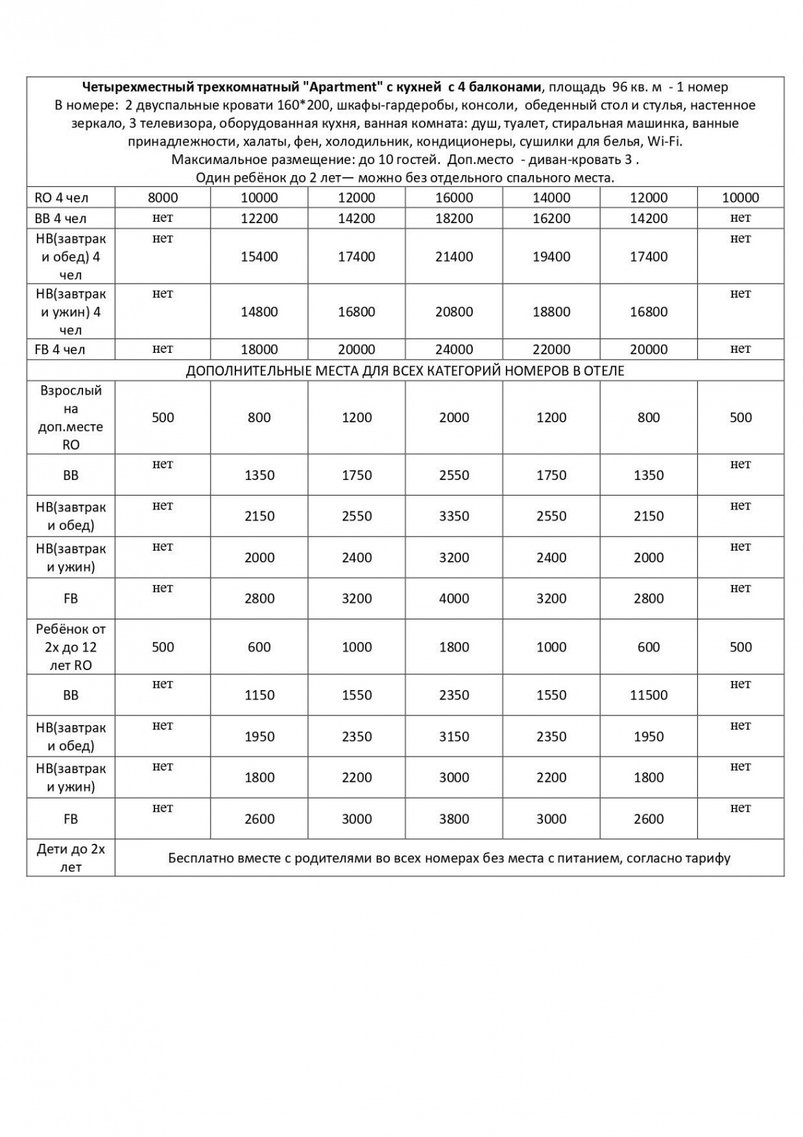 • Количество человек в каждом номере: взрослых и детей;